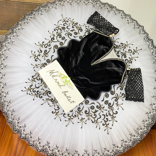 White and Black Lace Ballet Tutu Dress for Girls – Elegant Performance Wear - MDT0160