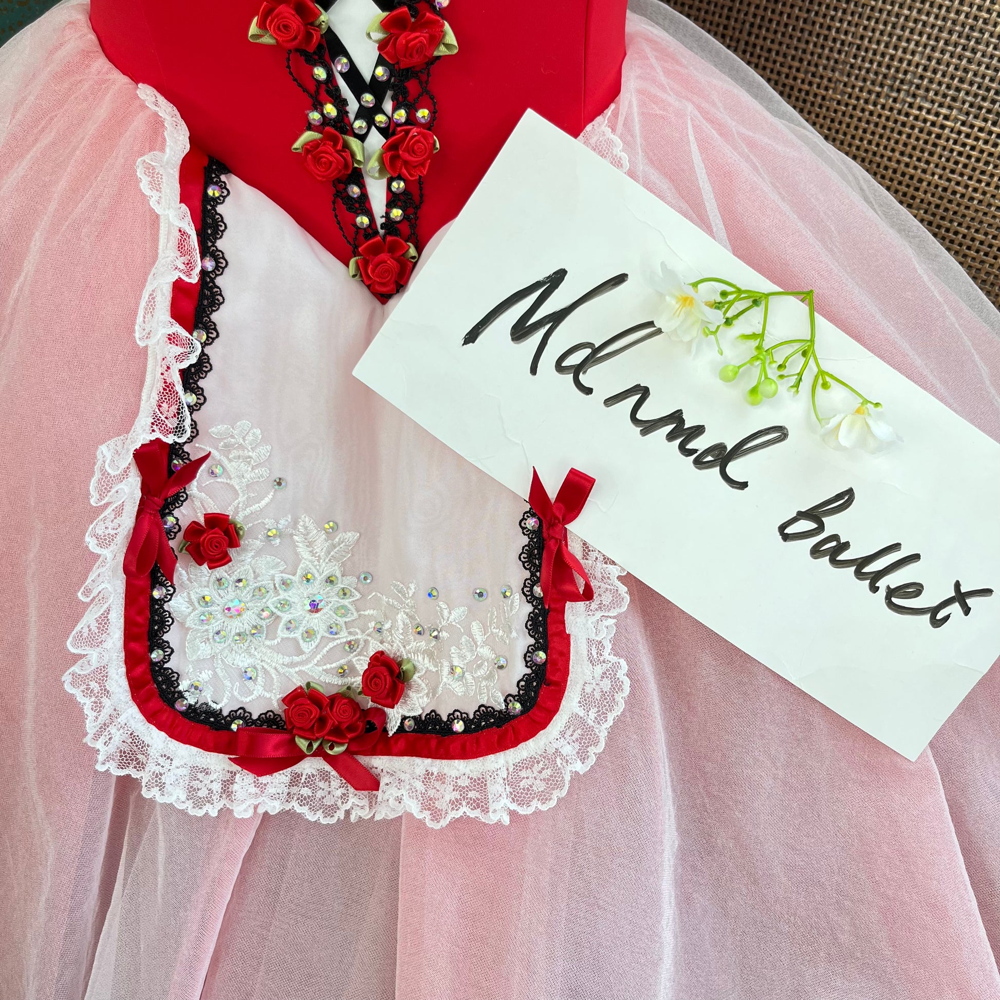 Red Ballet Dress with Lace Detailing and Floral Embellishments - MDC0133