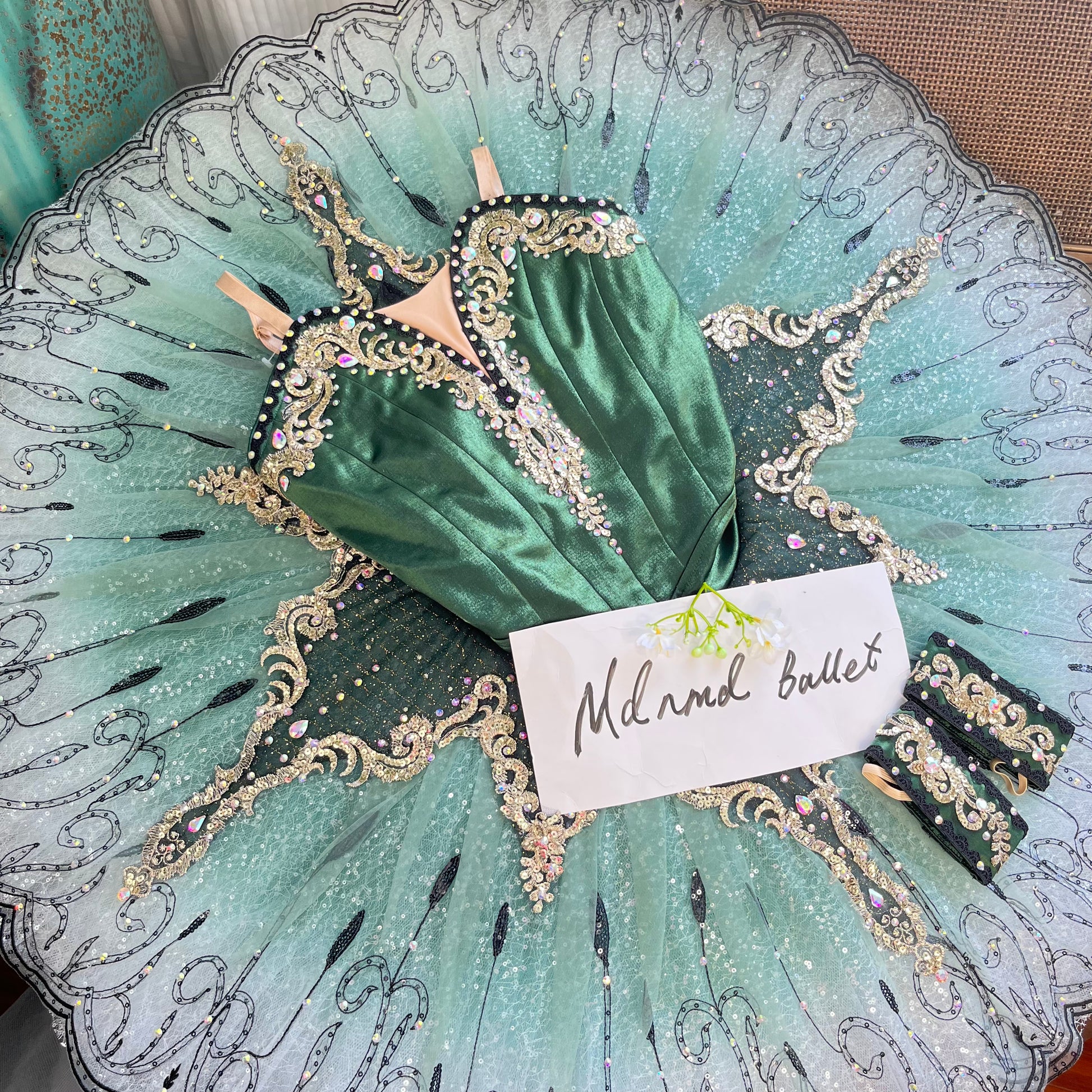 Emerald Green Professional Ballet Tutu with Intricate Crystal Embellishments - MDT1123