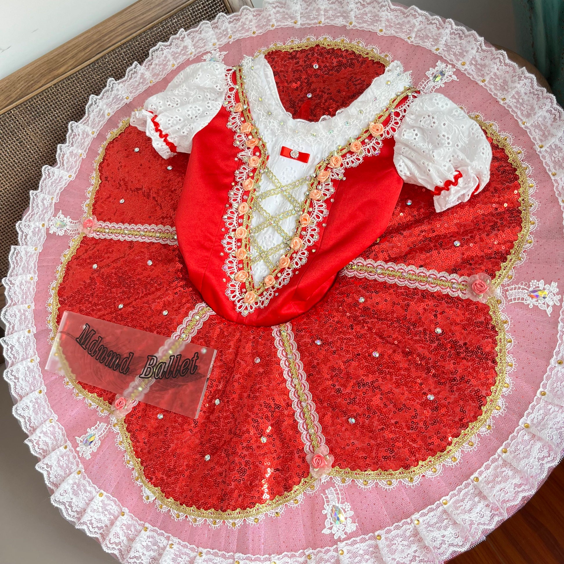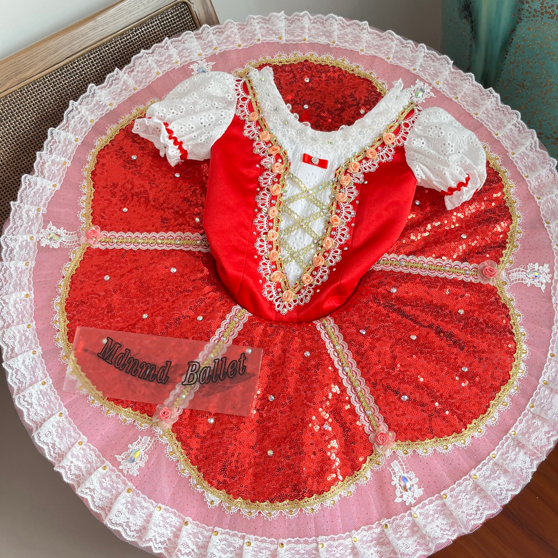 Professional Red Playful & Sparkling Ballet Dress with Lace & Rhinestones-MDT0939