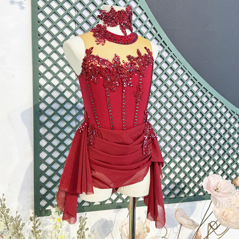 Red Gymnastics & Performance Outfits | Custom Modern Dance & Ballet Wear (Adults & Kids)-MDC0483