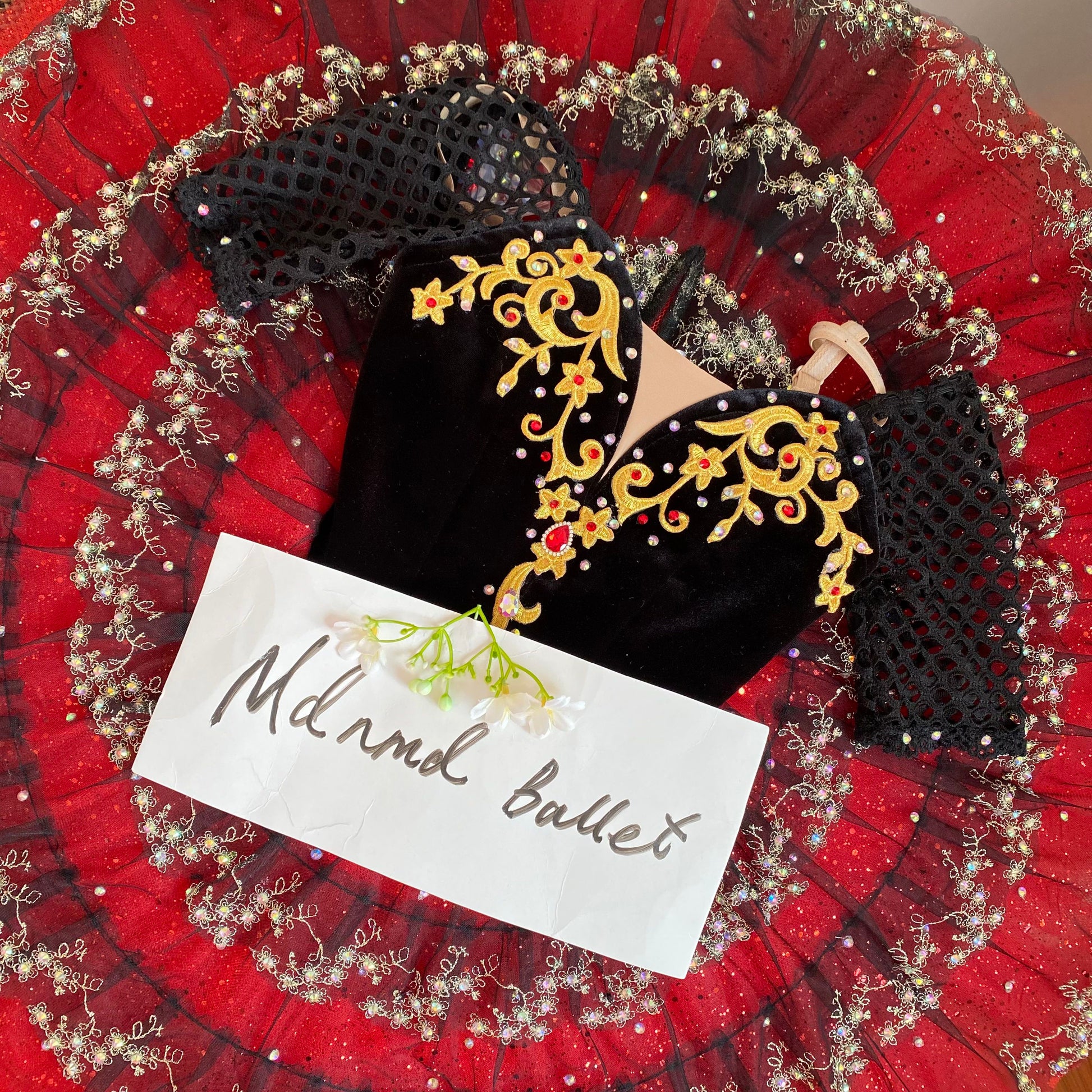 Stunning Handmade Red Ballet Tutu - Velvet Bodice with Gold Embroidery-MDT0754
