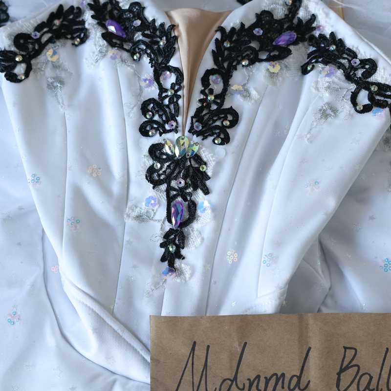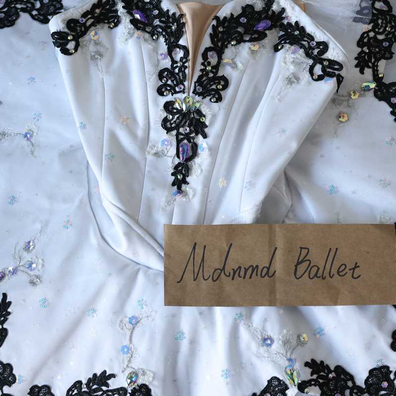 White and Black Lace Ballet Tutu Dress for Girls – Elegant Performance Wear - MDT0160